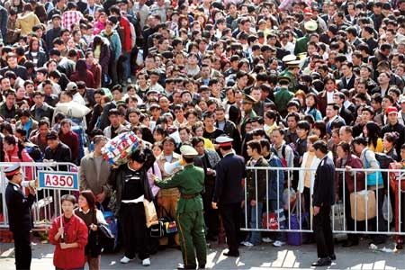 Going home for the Spring Festival is written in Chinese genes. It seems that the whole nation is on the go around this time of year. Therefore, the national transport system is strained by huge numbers of travellers on the way. Crowded trains and packed buses are commonplace. Travelling at this time of year in China is like fighting a war. The world this year has had a better understanding of this Chinese feature through telly pictures of the Guangzhou Railway Station and of all the vehicles marooned on the Beijing-Zhuhai Expressway by the blizzard. The Guangzhou Railway Station was crammed with home–goers and the aforesaid expressway bore dragon-like trains of homeward-bound cars, buses and coaches.