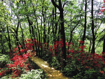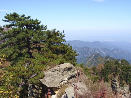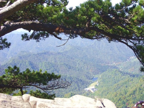 The first leg of the uphill climb was steep but very nice, with refreshing scenery along the way. It was some time after the Labour Day holidays. Azaleas were still dotting the hillsides where the forests were less dense. There were a lot of peculiar trees here and there. At first sight three trees were shooting up from the same root; on closer examination, however, the three trees were in fact three trunks of a tree, for they shared one root.