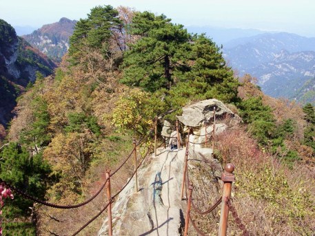 Some carpenters were crafting furniture for the temple, three or four of them. I stopped over and entered the temple. Two Taoist nuns were there, two aged ladies. One of my colleagues said a prayer in the temple. We chatted with the carpenters and the two nuns. They all said the path we were following would take us to some stunning scenery. One of the carpenters, however, cautioned us that the path was rough and that we should take great care.
