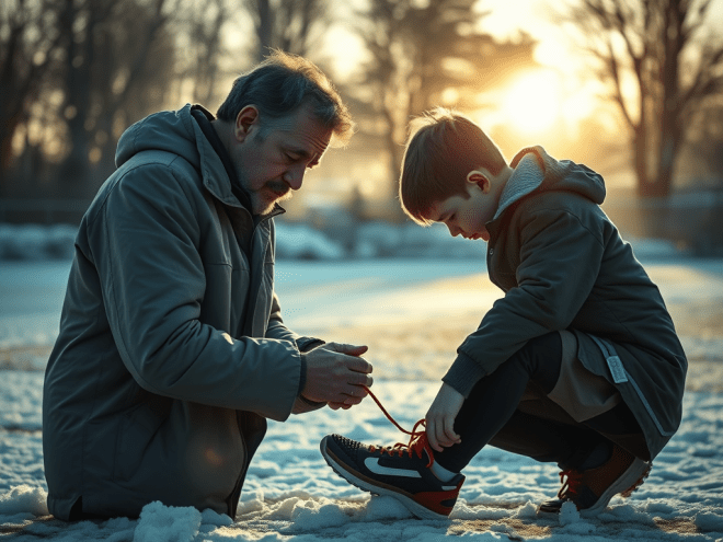 However, one winter, I saw a tender man in Mr Harsh. It was a freezing morning. We went to the sports field to do morning gymnastics as usual. When we were working out, I found my shoelace undone. I bent down to retie it. I tried many times, but it was all in vain, because the weather was so frigid that my little hands were simply numb. Oh, I was all fingers and thumbs then. I felt hopeless.