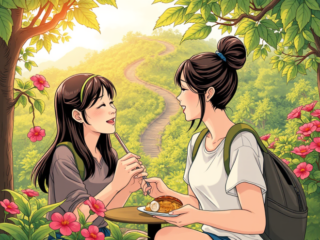 Watching her friend savouring each bite, Jingxin smiled. After the meal, they hiked at a community park called zhuochunyuan in the neighbourhood. Like a petite lady, the park is little but very nice with lush plants and flowers everywhere. While they were ascending the hill, Fei told Jingxin this and that about the vegetation by the side of the path. An urban kid, Jingxin found Fei’s talk enlightening. She learned a lot.