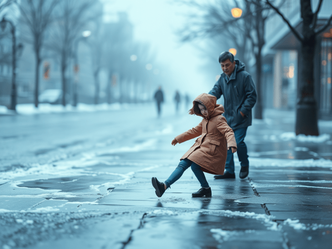There came a blizzard one day last winter. The next day it was freezing, and it became difficult to travel on the roads, which had turned treacherously slippery. A lot of people, as a result, fell and got injured.