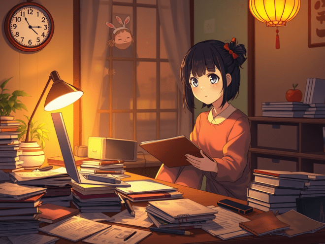 That evening I took a shower earlier than usual. Then I played a game on the phone on the sofa. Around 11 pm I was going to bed. I had to go to my study to pack up for school. Around 11.20, Father came in and said, “Ivy, your sister’s homework is too much. She cannot finish it. Can you help her out?” I would have refused it, but Father simply thrust my sister’s homework into my hand and left. I had no choice but to do it, for my dear sister.