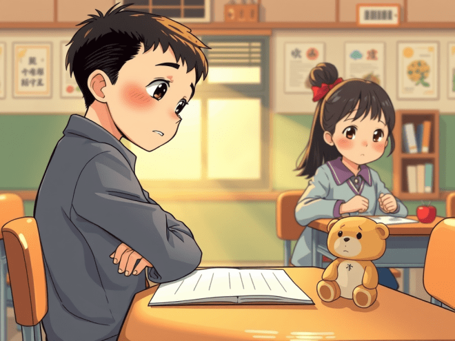 After my mind was made up, I, with the teacher’s go-ahead, had my seat moved to a place on the other side of the classroom. It was more than enough for me to merely have a glance at her every day. Meanwhile I redoubled my own efforts at my lessons.